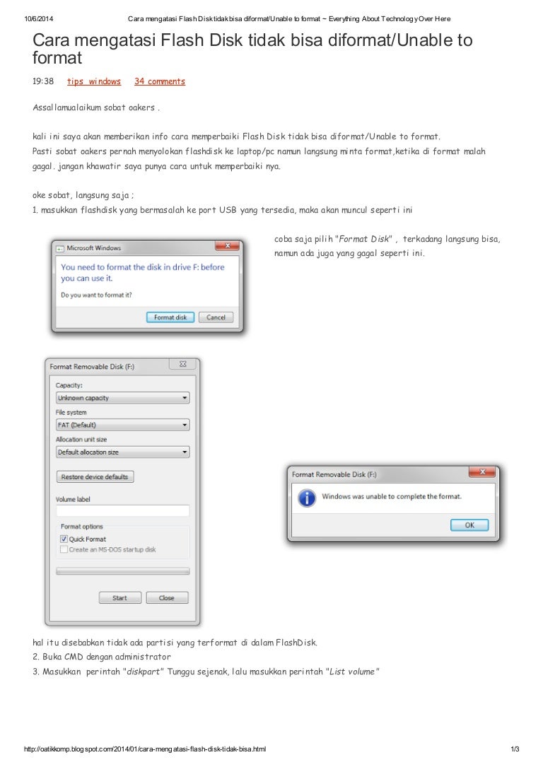 Choose yes in the prompt window to allow changes. Find disk drives and expand it. Right click on my computer and go to manage. Setting format fat32 pada file system. Download this advanced removal tool and solve problems with usb flashdisk and svghost.exe (download of fix will start immediately): A flashdisk need to format because some of the causes, like : Besides, you can try to fix the unable to format usb error by updating the usb driver. You can try the method here to format it. With a few simple clicks, you are able to create new volume on the removable disk that windows cannot format.